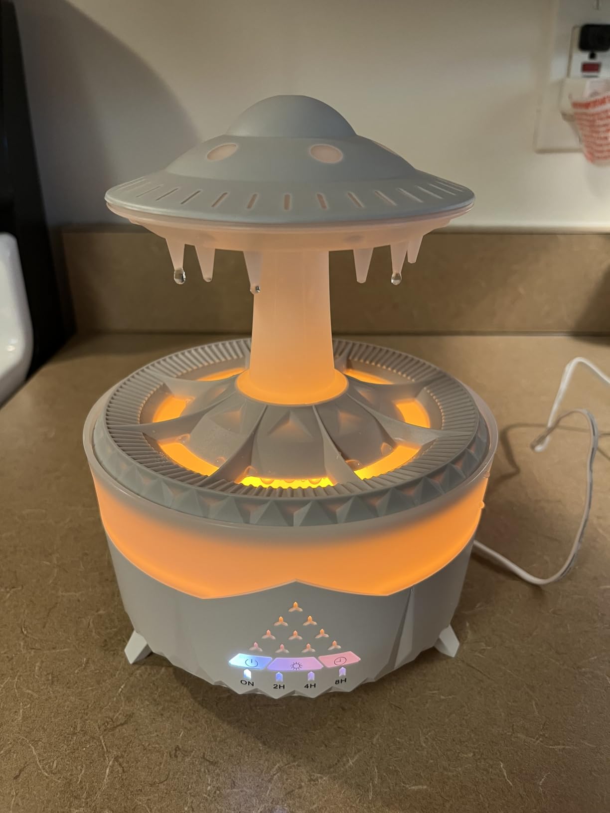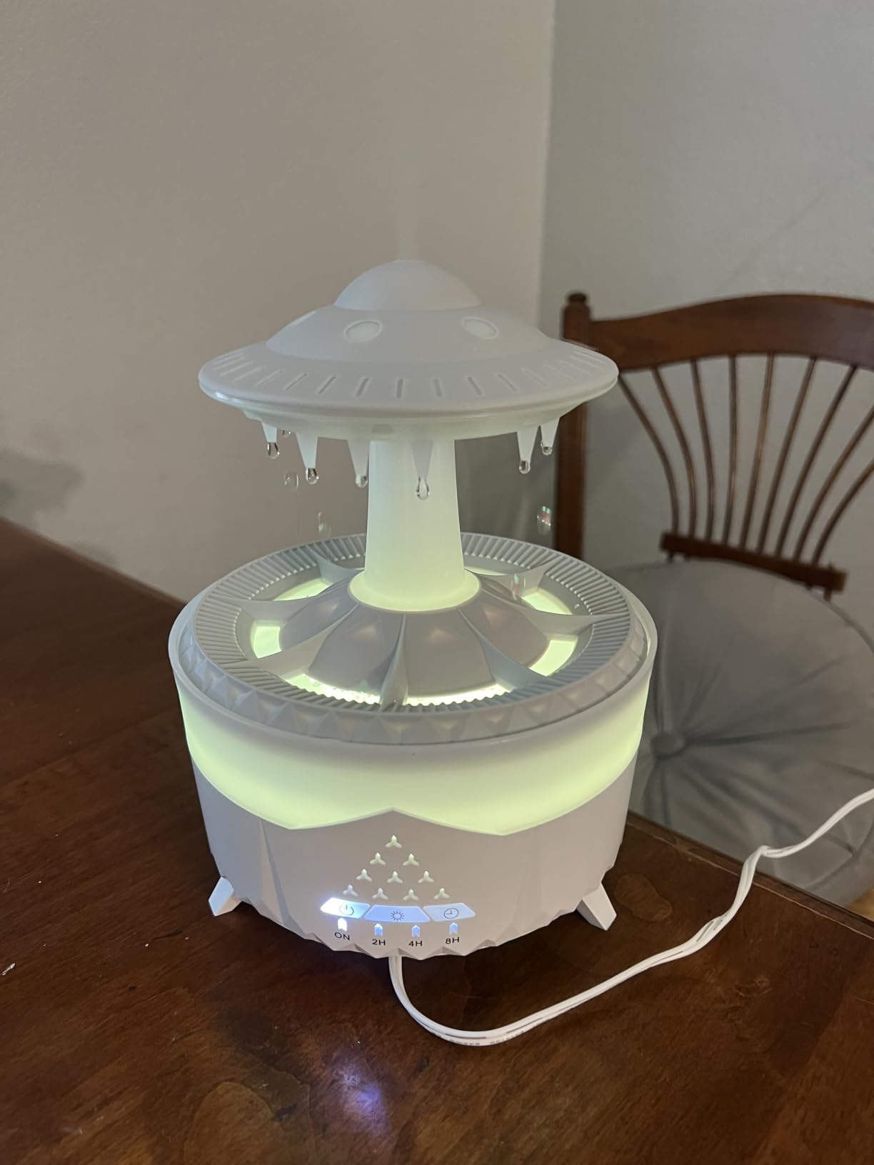 The UFO-inspired design brings a magical, futuristic touch to your decor. Compact, quiet, and USB-powered — simply fill with water, press start, and enjoy hours of calm mist and glow.